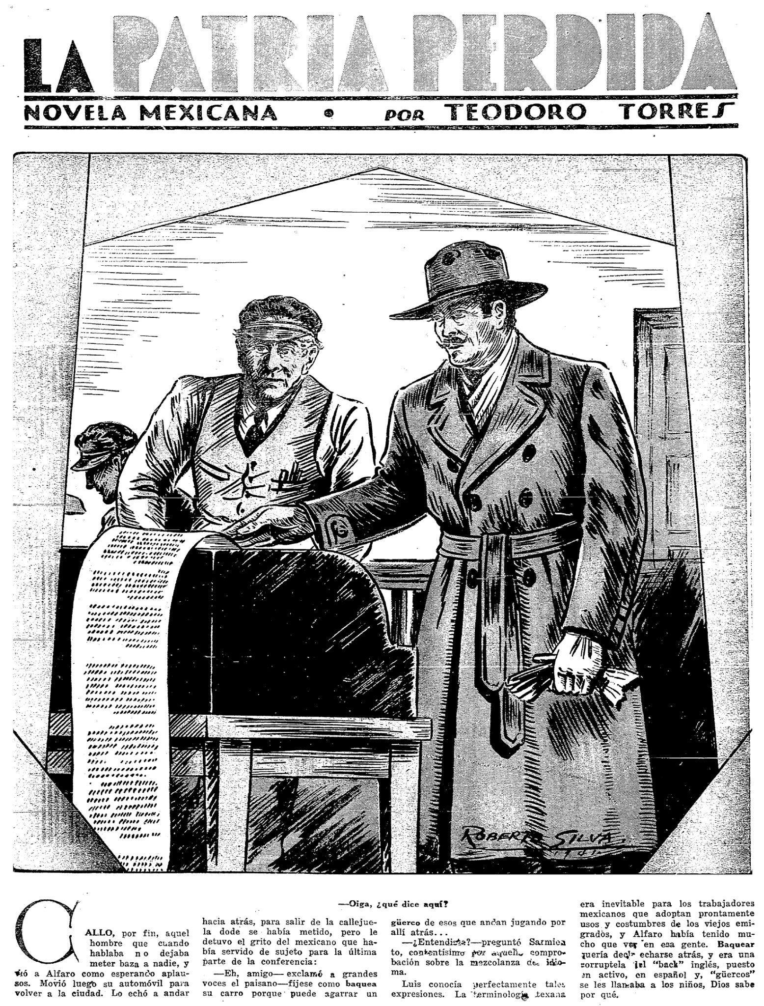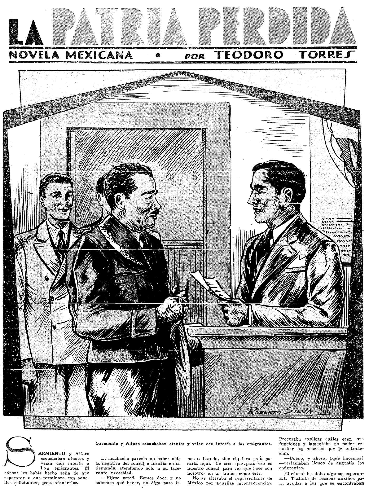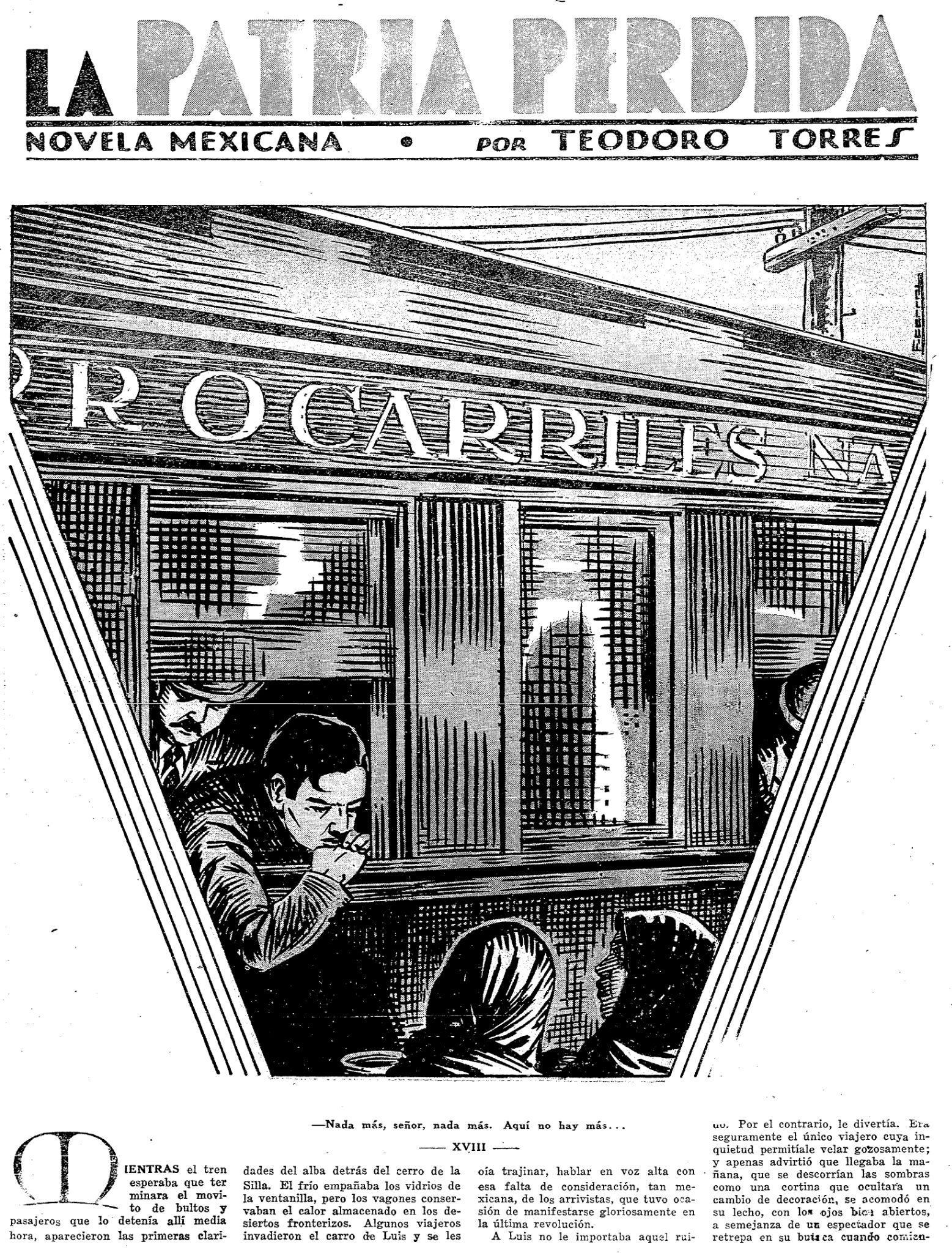 El libro La patria perdida (1935) del aclamado periodista mexicano Teodoro Torres (1888–1944) describe muchas de las experiencias de los inmigrantes mexicanos que Torres presenció durante su exilio en los Estados Unidos, un período que duró de 1914 a 1925, durante la Revolución mexicana y las circunstancias posteriores a ella. Aunque Torres comenzó a escribir ésta, su tercera novela, mientras estaba exiliado en San Antonio, Texas, no la retomó hasta 1931, mucho después de haber regresado a la Ciudad de México y haberse establecido nuevamente como escritor en algunas de las publicaciones periódicas más importantes de esa nación, como Excelsior, Revista de Revistas y México al Día (McCann 10). A partir de su propia experiencia transmigrante, con la publicación de La patria perdida, Torres logra producir una de las pocas novelas sobre una de las mayores oleadas de inmigración mexicana a los Estados Unidos de la historia. Huyendo de los peligros de la Revolución, más de un millón de personas (o un estimado del 10% de la población de todo el país) cruzaron la frontera hacia los Estados Unidos (Cardozo 38). Posteriormente, con la publicación de Golondrina sólo seis días antes de su muerte en 1944 (McCann 15), Torres también se consagró como uno de los pocos autores que atestiguan, y después documentaron, uno de los mayores retornos, a veces forzado, de inmigrantes mexicanos durante la repatriación que tuvo lugar a raíz de la Gran Depresión (Cardozo 144).[1]