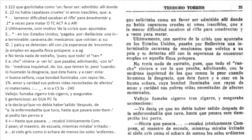 Imagen: Comparación del texto generado utilizando el reconocimiento óptico de caracteres (ROC, OCR por sus siglas en inglés) y el texto original