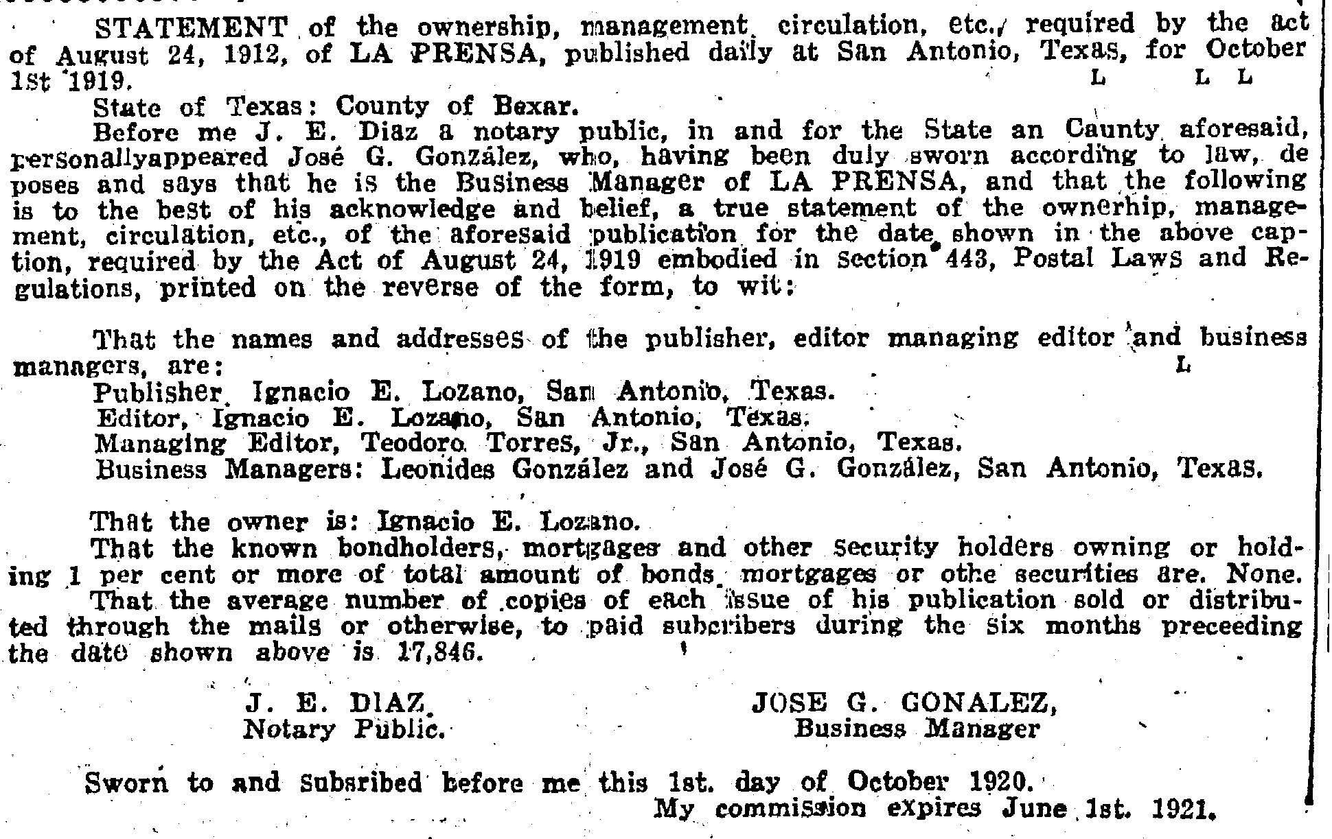 La Prensa, 4 Oct. 1920, p. 8. Readex: America’s Historical Newspapers.