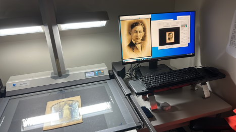 Imagen: Don Cristino en presencia en el cuarto de escaneo de Arte Público Press.[41]