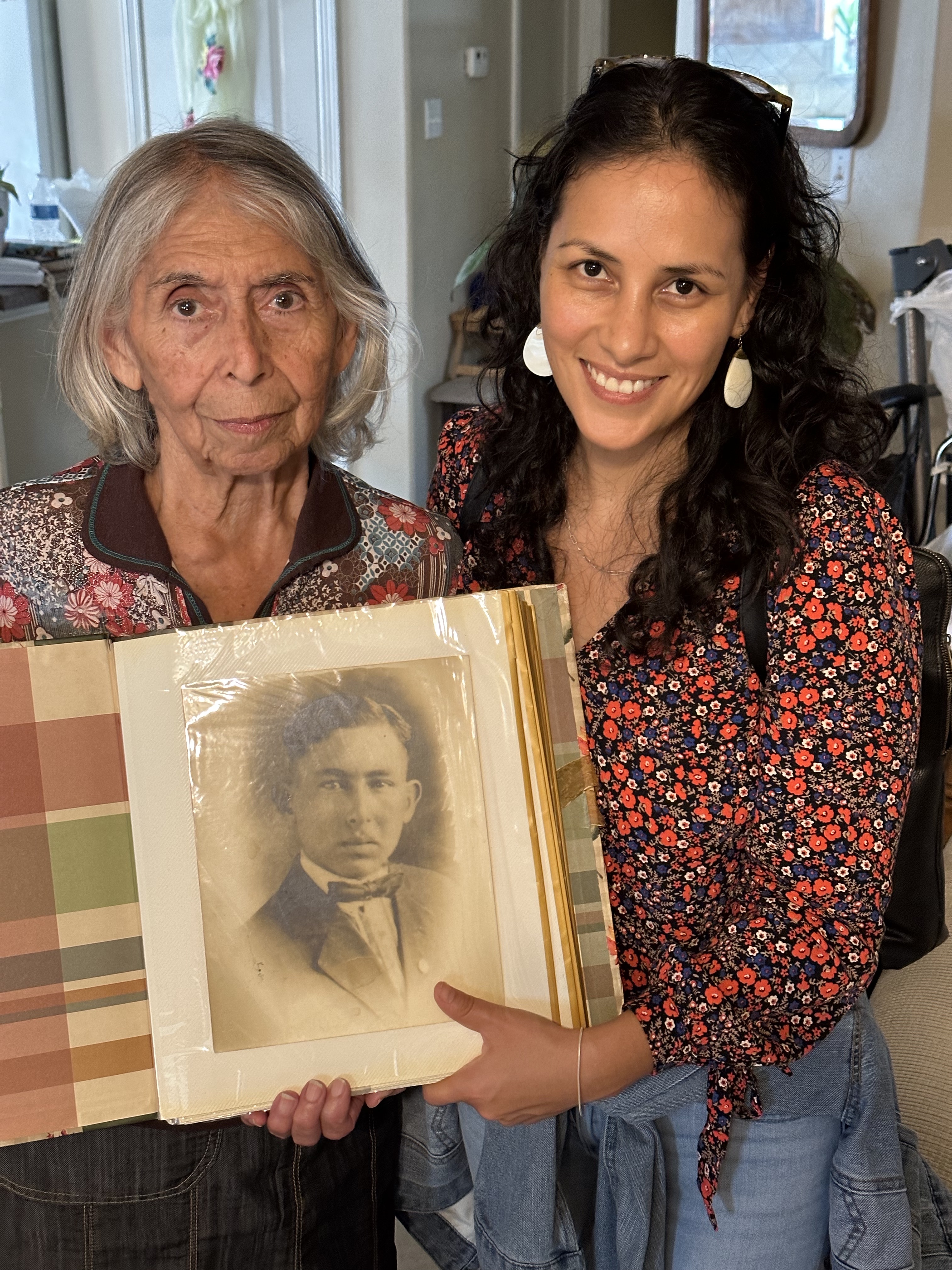 Tengo frente a mí, el archivo que la señora Santos me ha puesto en las manos. Con voz y mirada, me ha pedido que cuente la historia de su padre. Me quedé pensando en la responsabilidad de entrar en una memoria que no es mía. Por la forma en la que trataba y mostraba sus álbumes, pensé que dudaría en prestármelos. Sin embargo, la determinación con la que los sostenía cuando los puso en su cama, fue la misma de cuando los puso entre mis manos. Tómalos, me dijo. Haz lo que tienes que hacer. Me expreso el deseo de que, estas fotografías y documentos algún día estuvieran cerca de esas tierras donde su padre vivió. Quizá, en una de las bibliotecas cercanas. Sería lo justo, me dice. Le digo que, en ese caso, valdría mucho la pena que existiera una copia digital de su archivo familiar también en Houston, donde ahora vive ella. Mejor aún, generar un archivo digital que pudiera alcanzar a vivir en la biblioteca donde ella trabajó durante muchos años. ¿Qué le parece? Le pregunto a la señora Santos. Maravilloso, me contesta.